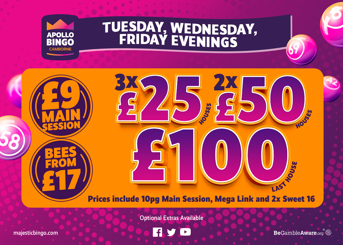 | No in club bingo until 5.15pm so why not play online at https://majesticbingo.com/bingo |